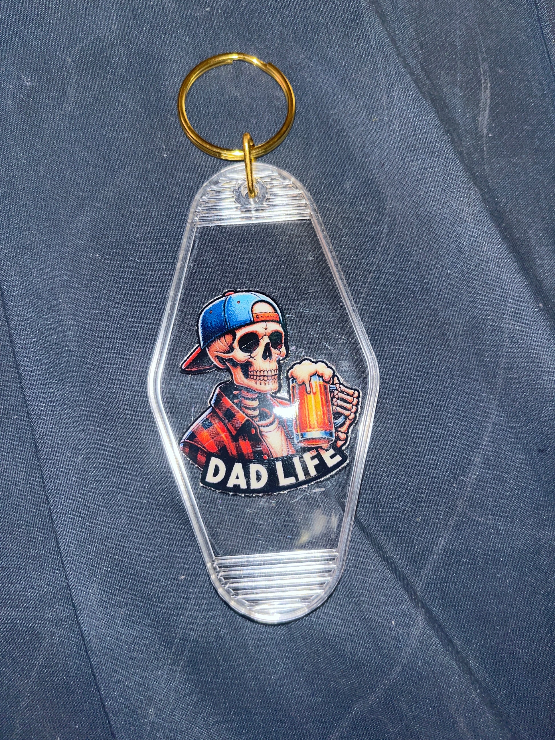 Elevate your keychain game with our MOTEL KEYCHAIN featuring the trendy "Dad Life" design on a clear background. Perfect for the stylish dad on the go, this durable keychain adds a touch of personality to any set of keys. Made with high-quality materials, it's a functional and stylish accessory for any dad.