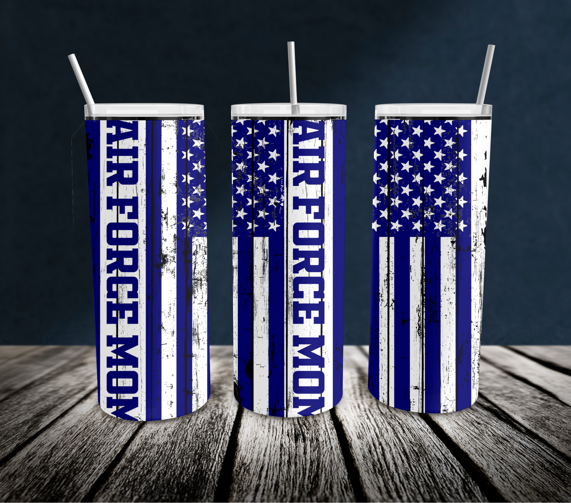Crafted for moms with loved ones in the Air Force, the 20oz: Air Force Mom tumbler serves as a constant reminder of their family's sacrifice. This durable tumbler keeps drinks at the perfect temperature, making it ideal for busy moms on the go. Show your support and stay hydrated with this stylish and functional tumbler.