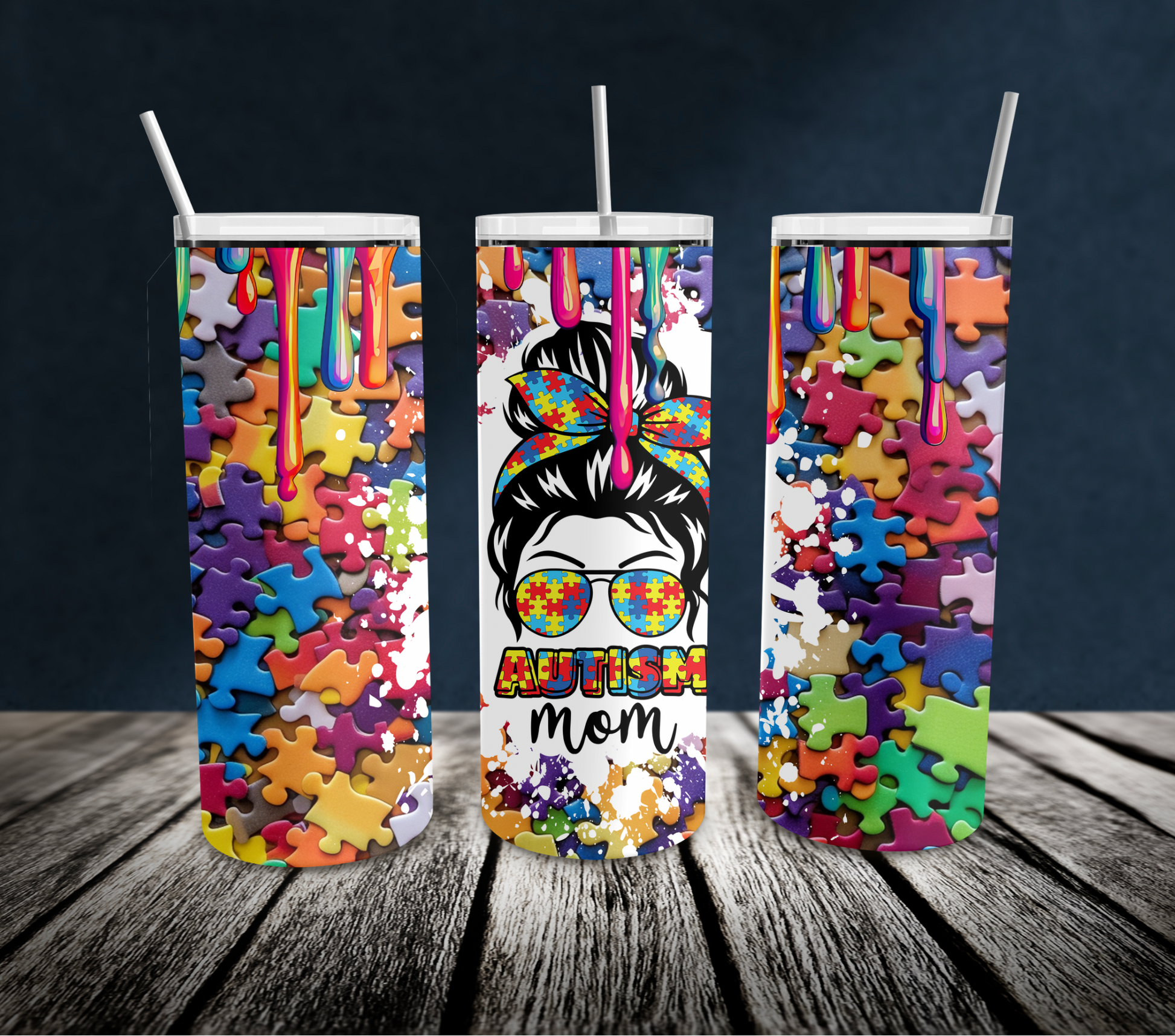 "Show off your pride and love for your child with our 20oz "Autism Mom" tumbler! Keep your favorite drinks at the perfect temperature while spreading awareness and support. Perfect for busy moms on the go!"