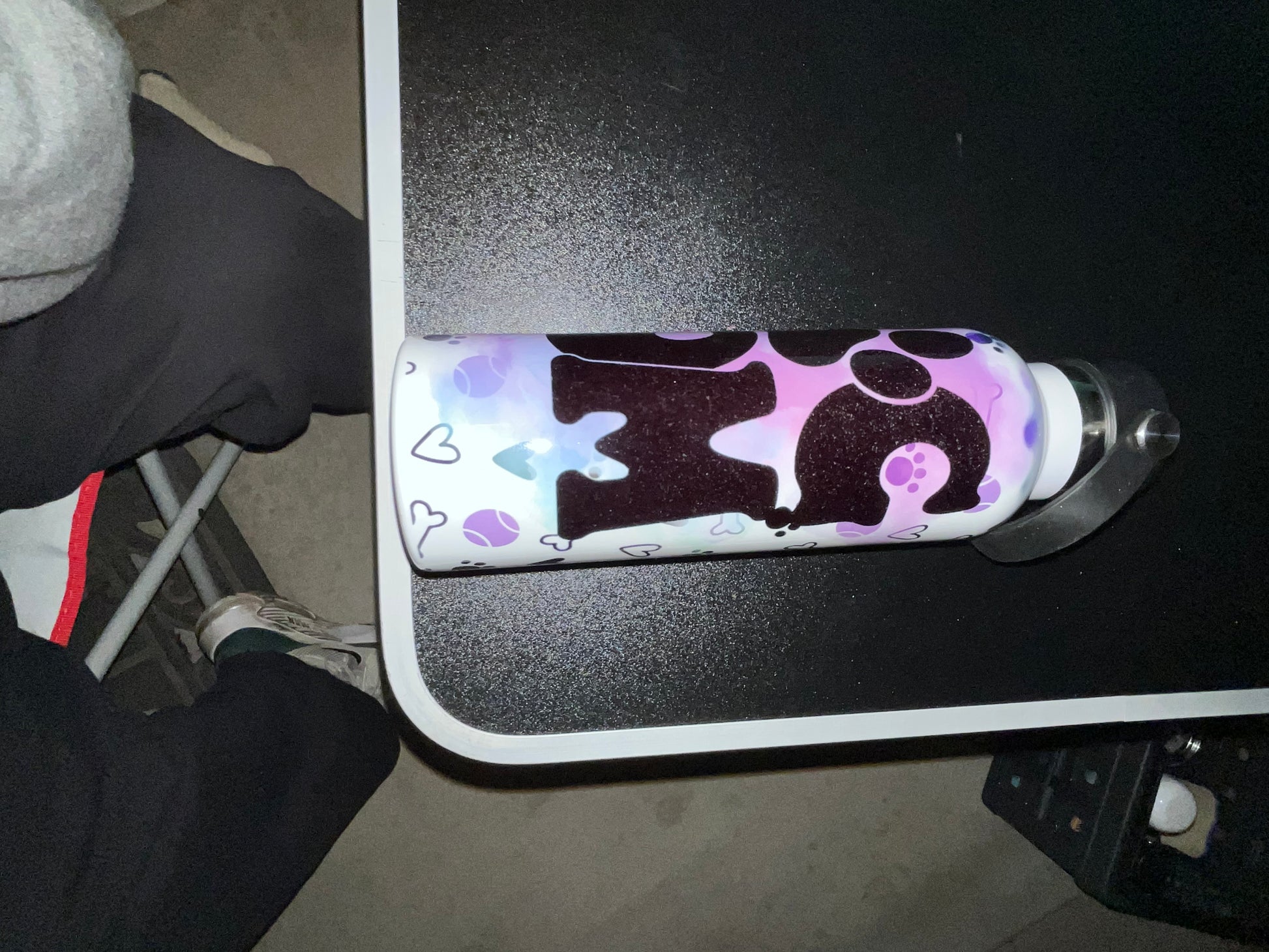 This 20oz Dog Mom Purple and Blue on Waterbottle tumbler is perfect for any dog-loving mom on-the-go. With its large capacity and durable construction, it's ready for any adventure. Its vibrant purple and blue color adds a touch of fun to your daily routine. Show off your love for your furry friend with this stylish tumbler.