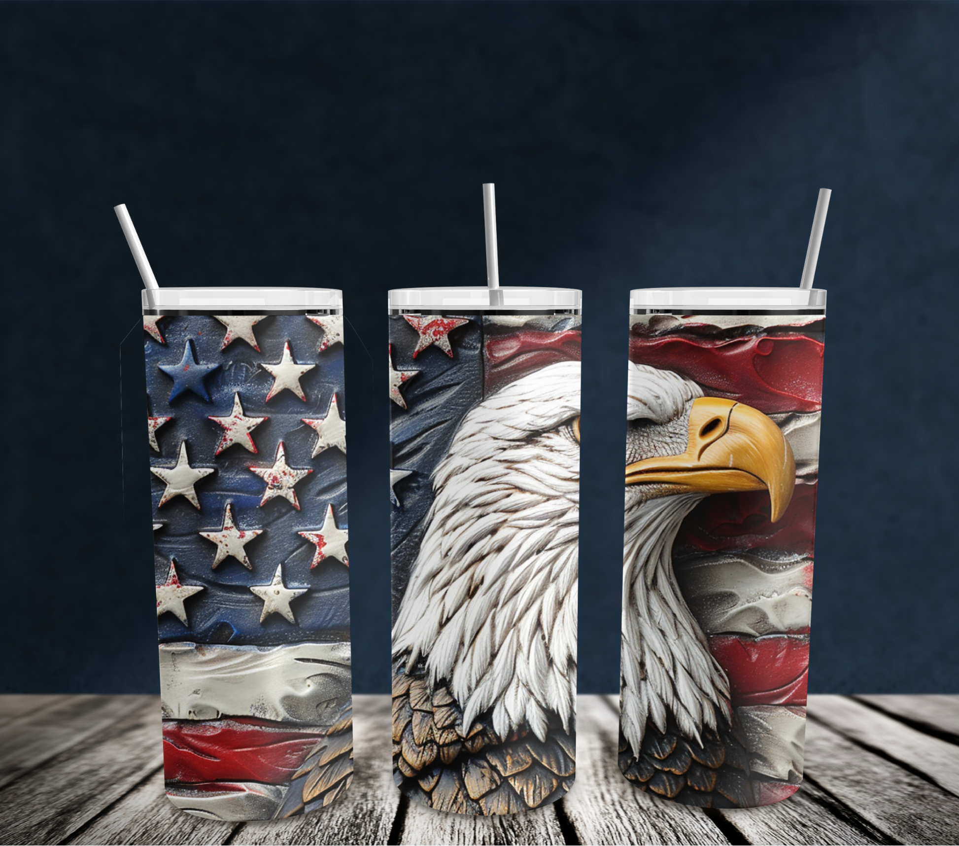 Experience patriotic pride while staying hydrated with our 20oz Eagle USA Flag tumbler. Made with high-quality materials, this tumbler features a bold and vibrant American flag design. Keep your drinks hot or cold for longer with its insulated construction. Perfect for any outdoor adventure or daily use.