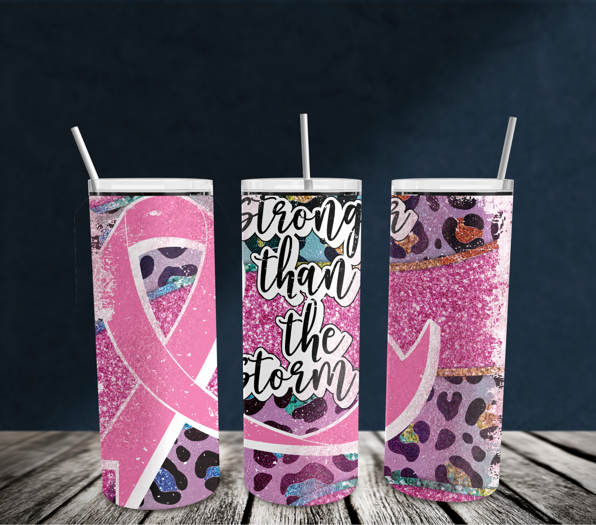 Stay hydrated in style with our 20oz Glitter Stronger than Storm -Pink Ribbon tumbler. Show your support while enjoying your favorite beverage. Made with durable materials, this tumbler is perfect for on-the-go use. Stay refreshed and make a statement with every sip.