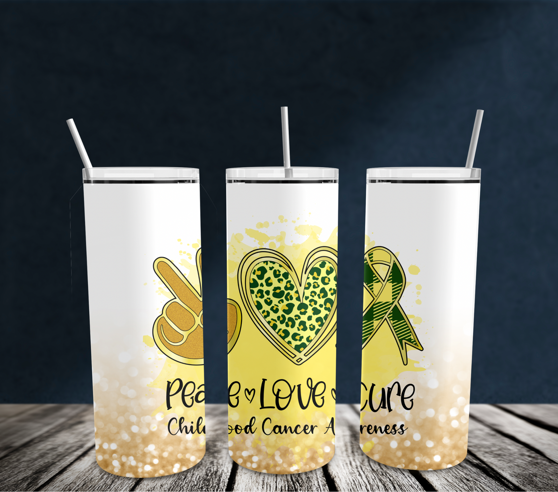 This 20oz bottle features a Peace Love Cure design, making it the perfect way to show your support for those affected by illness. Made with durable materials, it is also perfect for staying hydrated on the go. Spread awareness and stay hydrated with this stylish bottle.