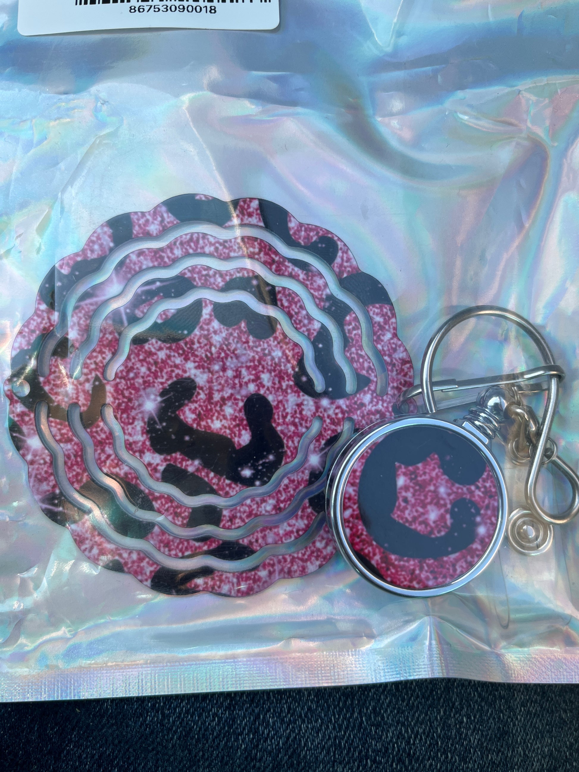 3 inch WIND SPINNER and BADGE REEL: Pink Leopard