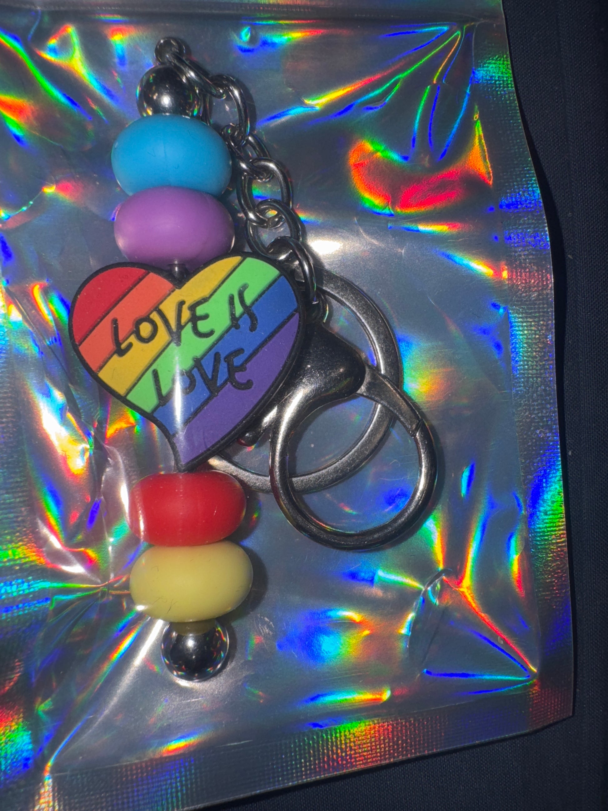Show your support for the LGBTQ+ community with our BAR KEYCHAIN: Love is Love. Crafted with high-quality materials, this keychain is a stylish accessory that also serves as a reminder of the importance of equality and love. Carry it with you everywhere you go and spread the message of love and inclusivity.