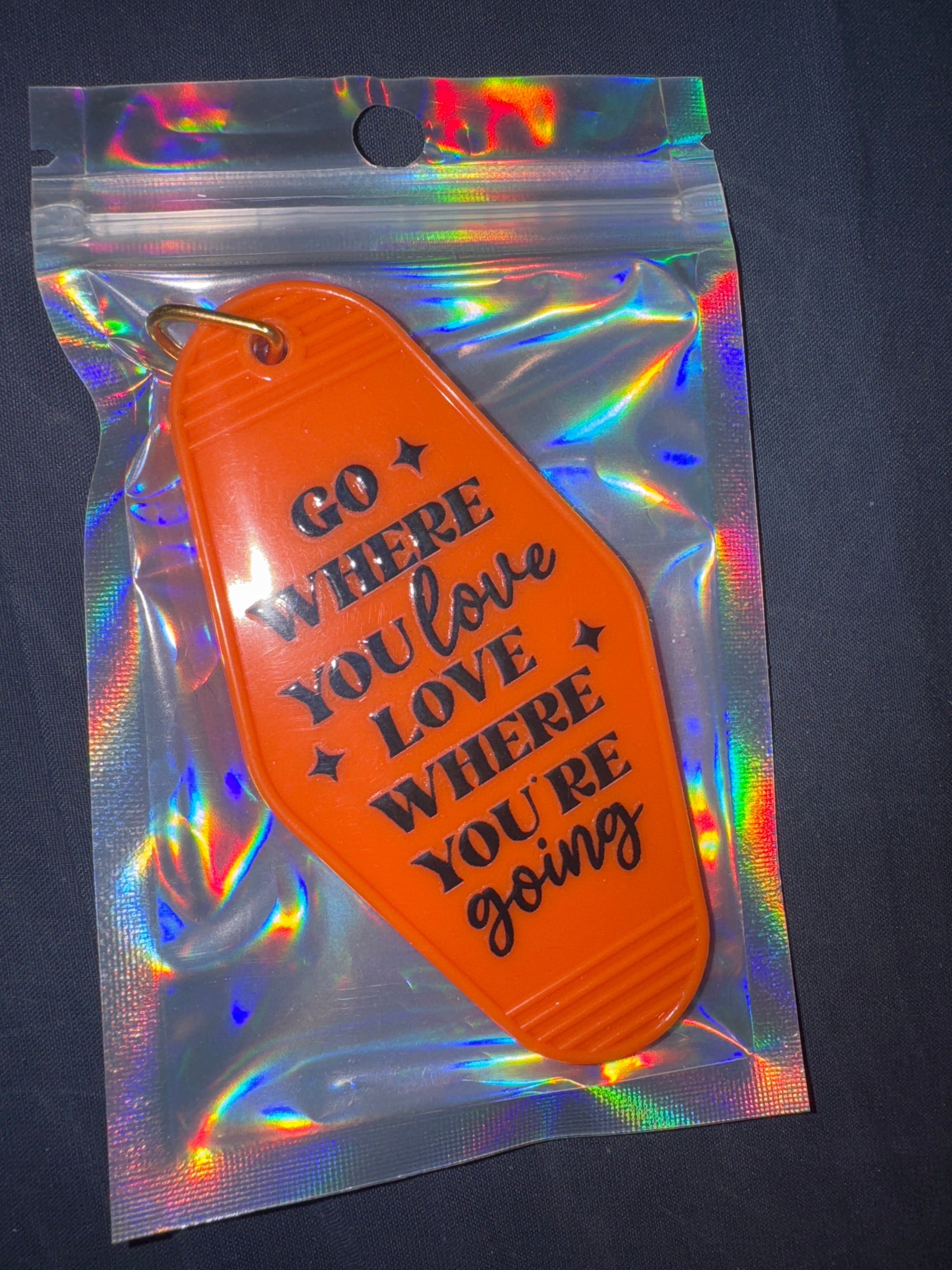 MOTEL KEYCHAIN: Go Where You Love on Orange