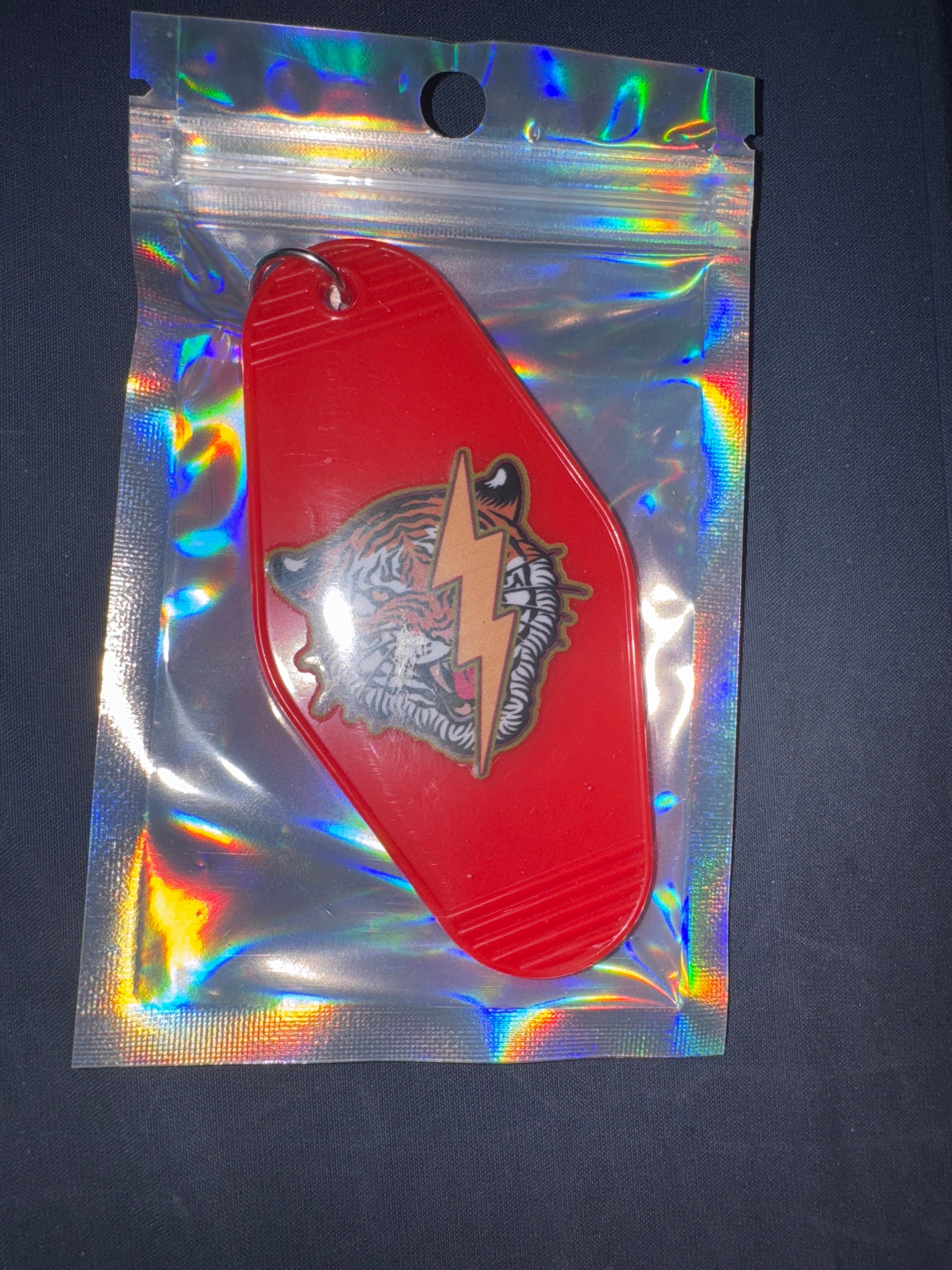 MOTEL KEYCHAIN: Tiger Lighting on Red